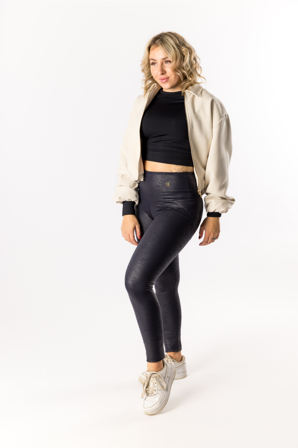 GoldBee Legíny Push-Up Koženkové Dark Blue