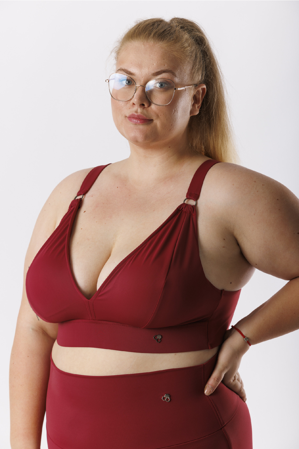 - Unikátní střih bez kostic s vycpávkami a pevnou gumou pod prsy pro potřebnou podporu
