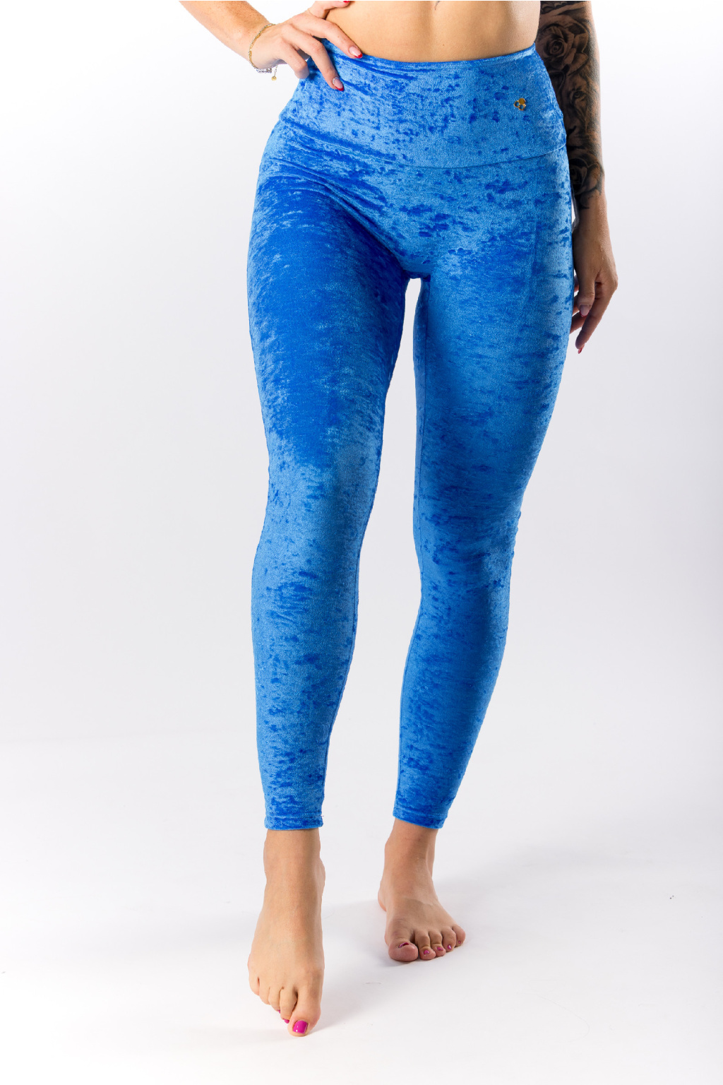GoldBee Sametové Legíny Stahující Pas Ocean Blue