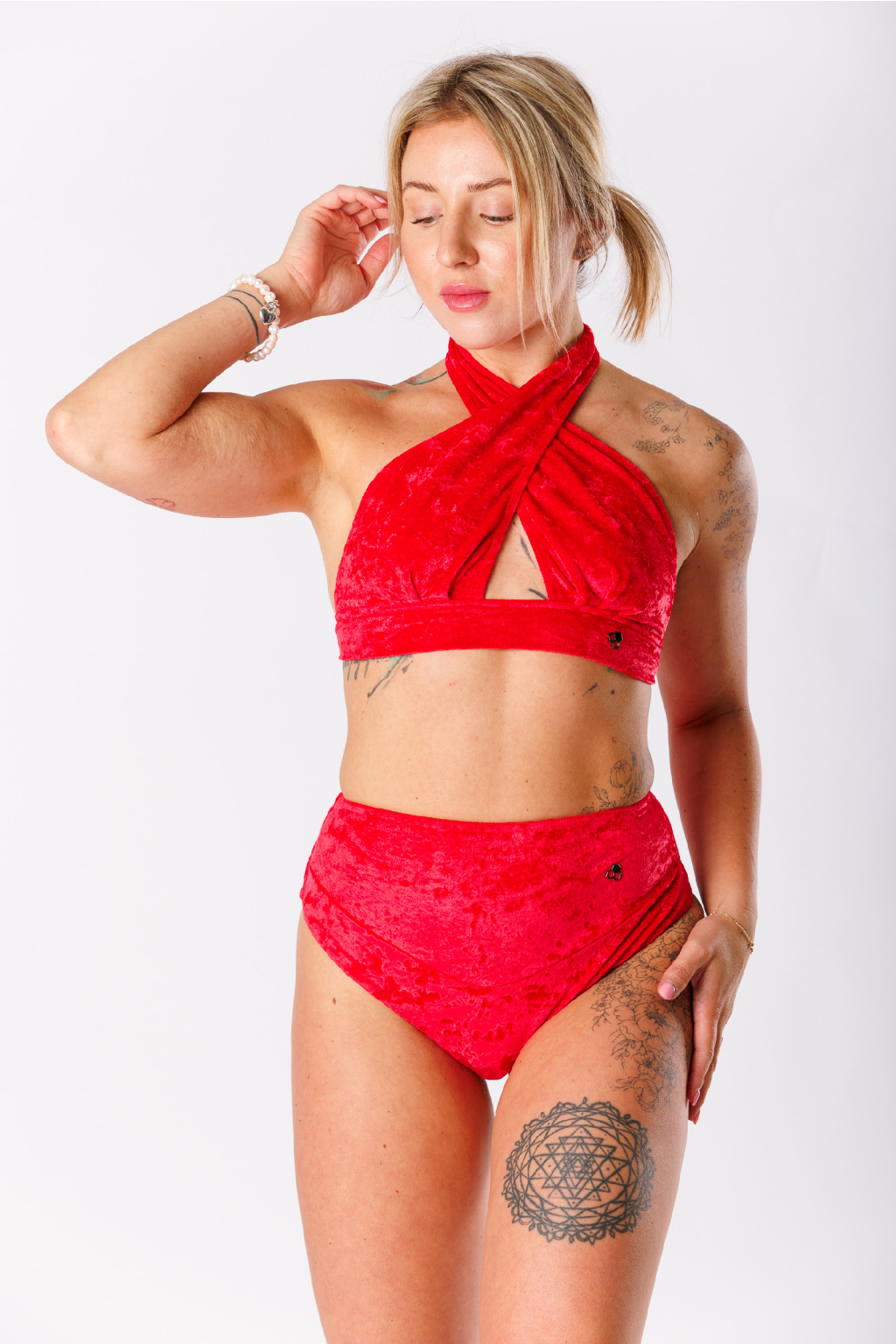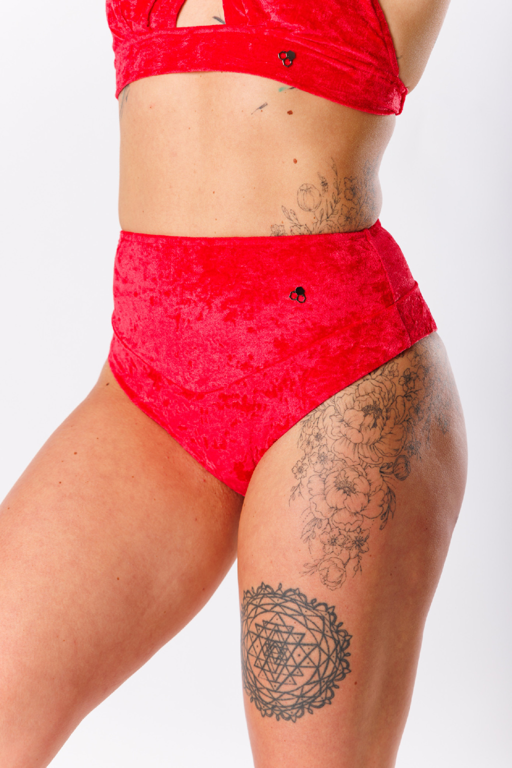 GoldBee Sametové Plavky Brazilky S Vysokým Pasem Red