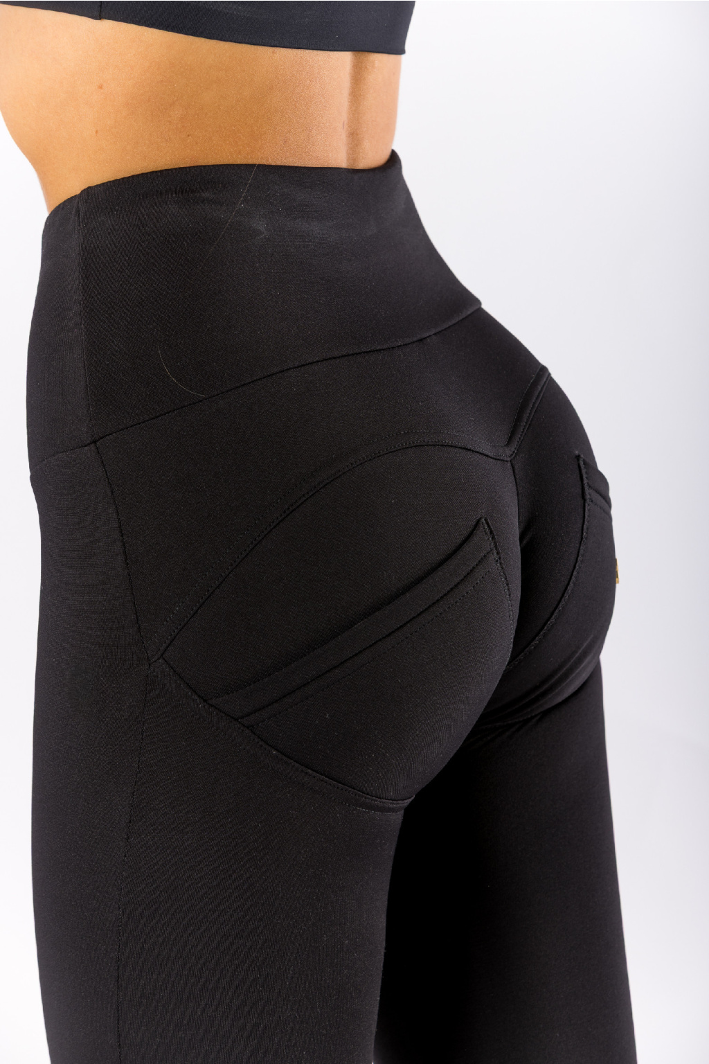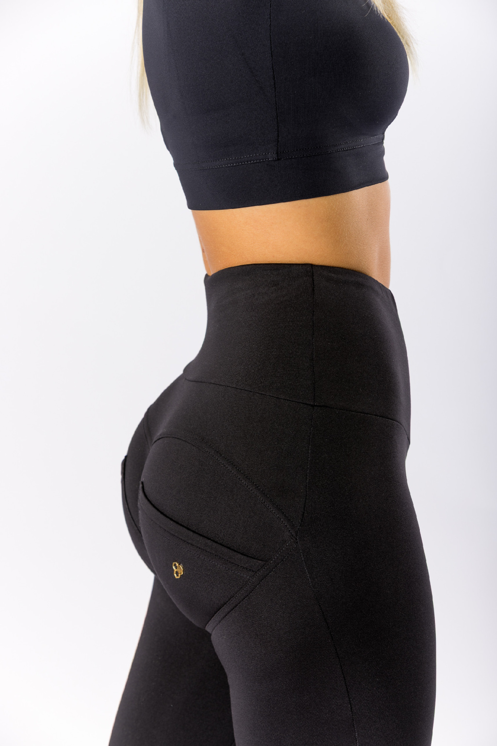 Legíny jsou vybaveny stahujícím vysokým pasem, který pevně obepíná bříško, opticky ho zplošťuje a vytváří dokonale štíhlou siluetu.
